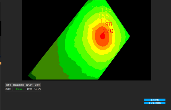 以上图数据为例,其眩光面积占比小于法规标准要求的25%,因此,该样品经测试验证符合要求。