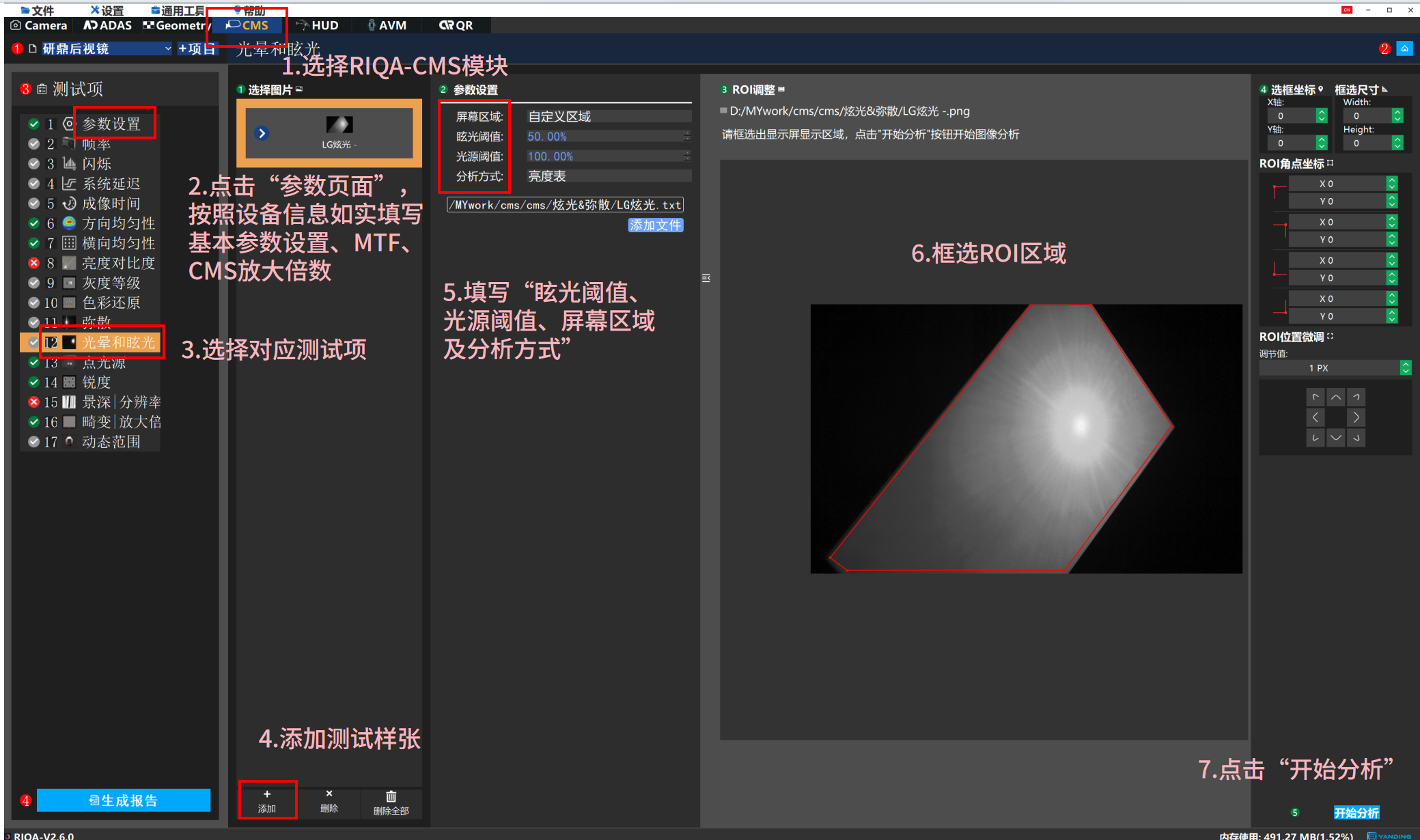 RIQA软件分析后会输出眩光面积占比与眩光区域的总像素的数据结果。眩光区域指监视器画面内,眩光信号亮度大于眩光诱导最大亮度一半的成像区域;眩光面积占比为该区域占整个监视器画面的百分比。