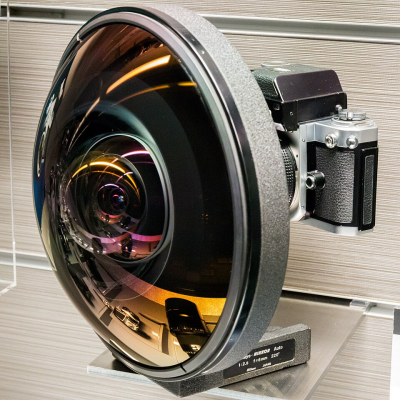 | 图 1 从轴外视角观察鱼眼镜头的入瞳(图像出处:https://commons.wikimedia.org/wiki/File:Fisheye-Nikkor_Auto_6mm_f2.8_lens_2015_Nikon_Museum.jpg) |