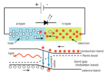 LED 的发光过程本质上是电子在电场驱动下发生的非平衡态能级跃迁: