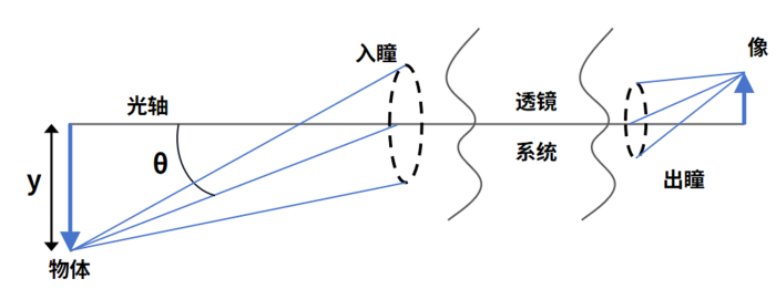 如图所示,假设发光的物体为朗伯辐射体(或余弦辐射体)时,光分别从镜头中心和镜头边缘传播,从中心到边缘,图中的θ角即主观线角会变大,镜头入瞳对发光点的立体角和发光点的发光强度会随着θ角的增大而减少,导致中心的光通量大于边缘的光通量,最终导致sensor中心的照度大于边缘。
