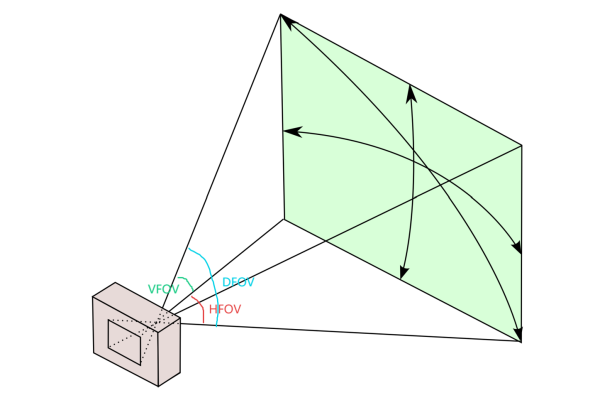以测量方向对视场角分类可分为水平视场角(HFOV)、垂直视场角(VFOV)、对角视场角(DFOV)。
