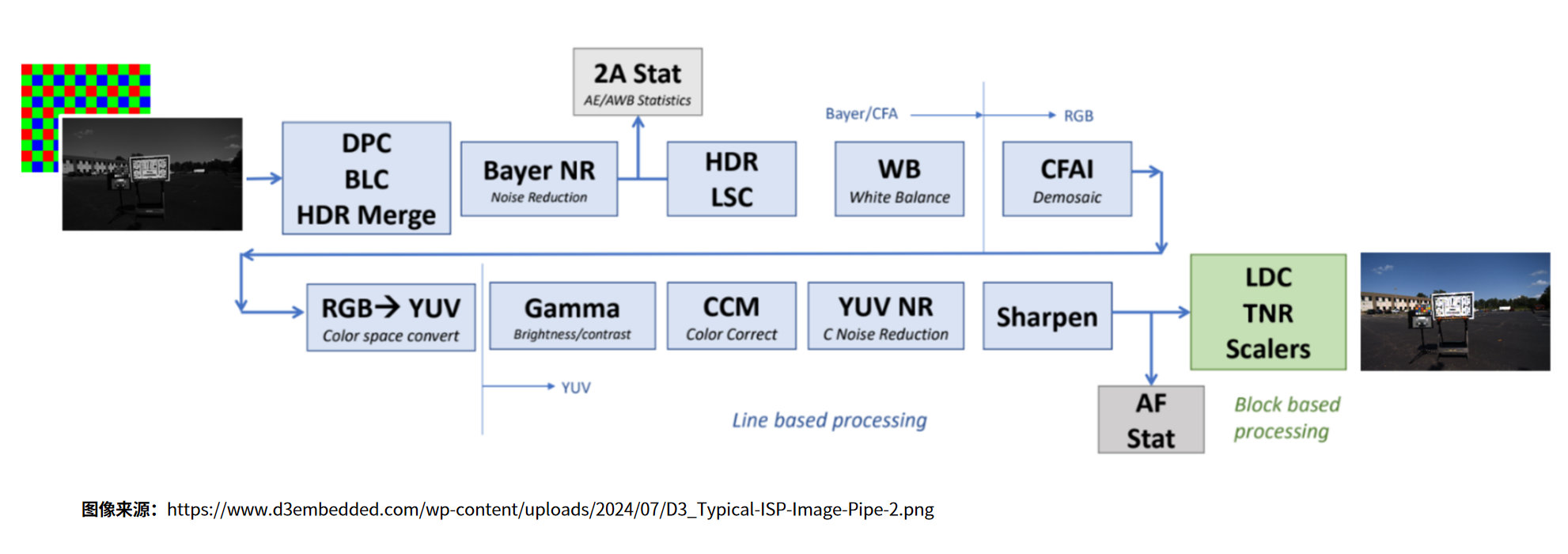 - 图像处理器:负责将传感器输出的 RAW 原始信号,经过ISP pipeline一系列算法处理,转化为彩色图像。