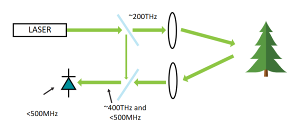 如上图所示,FMCW的工作原理为通过发射频率约 200THz 的调频连续波,将目标反射回的、因延迟产生频率偏移的回波(约 400THz)与留存的参考光混频,生成 < 500MHz 的低频差拍信号,以此解算出目标的距离与速度。其计算公式见图2所示。