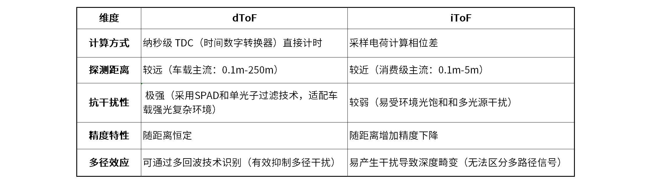 - 消费端: 随着 SPAD 探测器在 CMOS 工艺上的成熟,dToF 正在逐步侵蚀原本属于 iToF 的中长距市场,通过更高的能效比驱动移动端 AR 生态的爆发。