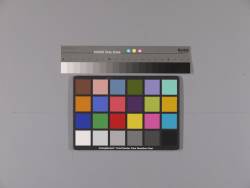 该图展示了图卡底部的灰度色块所得到的密度响应。它包括一阶和二阶拟合(蓝色和绿色虚线)。横轴是 LogExposure(减去目标密度)。Gamma(对比度)是对数像素级相对于对数曝光的平均斜率,针对底部第2-5个灰块(白色和黑色块除外)。