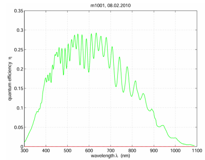 - 数据分析:对每个测试波长,扣除暗信号后,依次除以系统增益K(同工作点标定)与光谱校准的入射光子数$\mu_p(\lambda)$,计算绝对量子效率(见公式(3));彩色相机需对所有颜色通道分别评估。