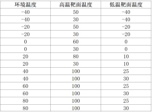 c)调整靶标高低温区域温差为 10℃±2℃;