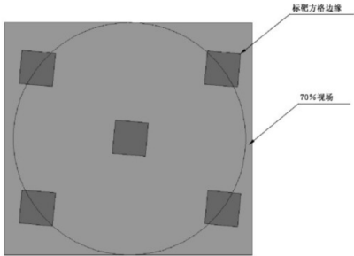 e)翻转 DUT 使被测靶标方格处于中心视场和 70% 视场处,靶标方格边缘的长度不少于 10 像素;