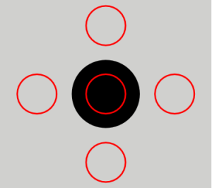 $$F=\frac{S_{Black}}{S_{White}}\times 100\%$$ 其中,$S_{Black}$ 表示黑色区域亮度均值;$S_{White}$ 表示黑色区域周围4个白色区域亮度均值。