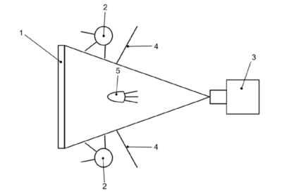 其中,1为均匀中性背景,2为背景照明光源,3为DUT,4为挡板,5为LED光源。