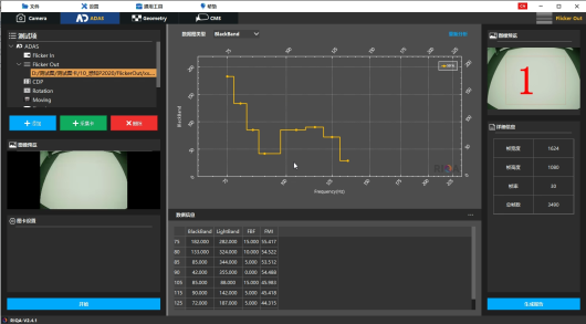 研鼎自研的MLB-HMC ADAS摄像头综合测试仪专为ADAS摄像头图像质量测试而设计,能够在复杂光照环境和不同运动条件下评估成像质量,可用于ADAS摄像头的CPI、Flicker(闪烁)、Motion(运动)测试。其专用的软件控制系统确保了测试条件的高度一致性,通过一次设置后便可导入脚本进行高效测量,适合摄像头的性能横向比较。