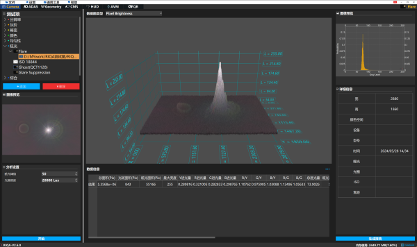 2.调节到合适的距离,记录模组到点光源的距离,旋转两轴,观察采集卡画面,拍摄需要的眩光图像:模组到点光源的距离(推荐距离680mm)利用下方标尺控制模组与光源的距离