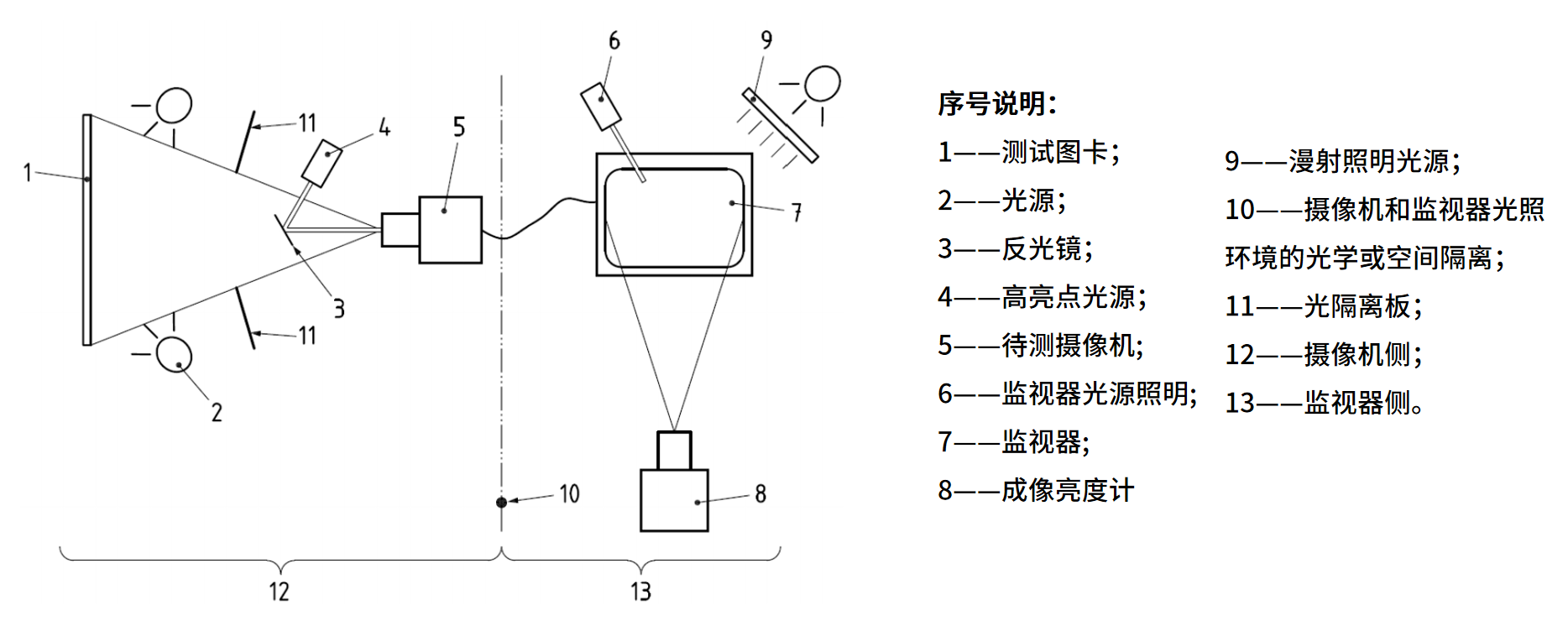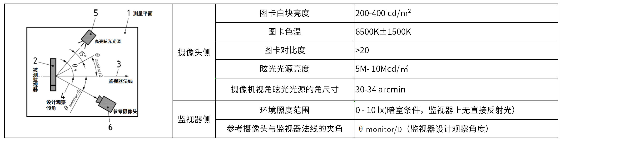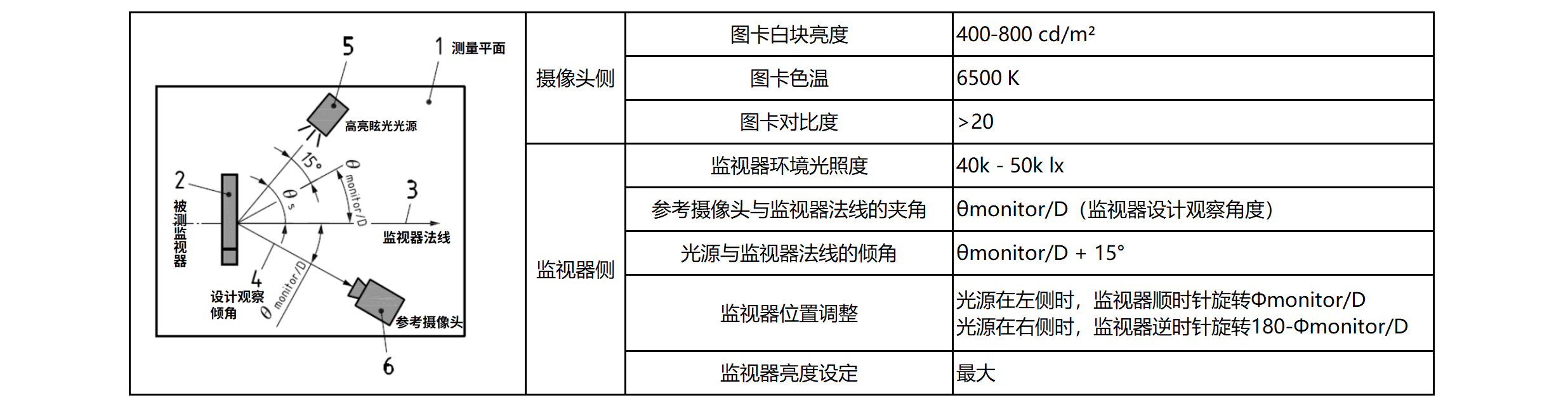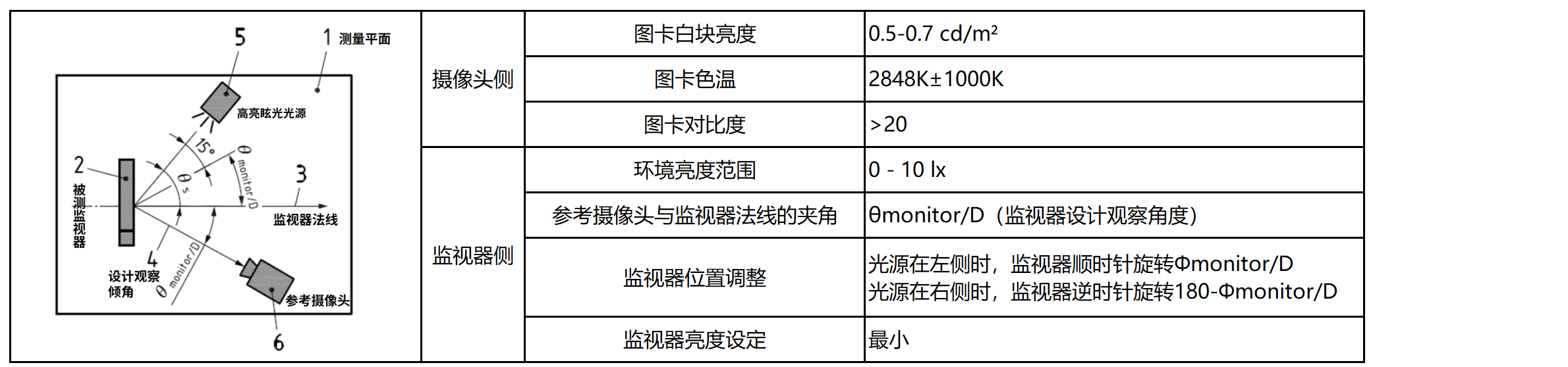 被测监视器的照明光源需为扩展光源,确保在监视器表面的测量视场内产生均匀的反射光。