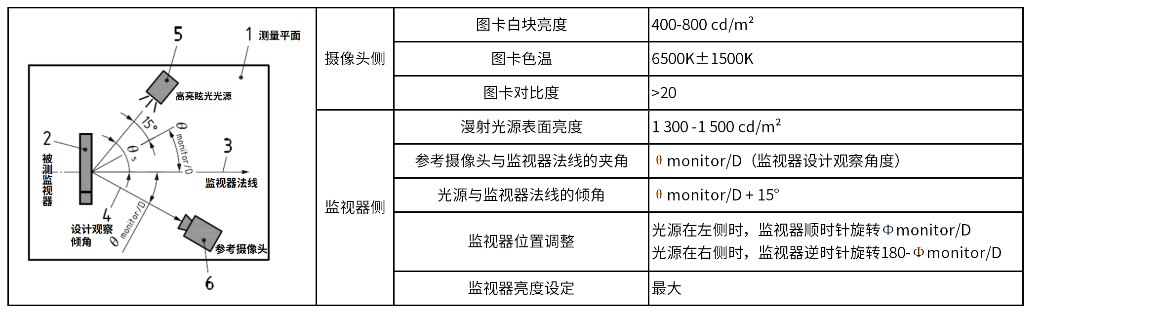 被测监视器照明光源需为点光源,并在测量点处产生平行且均匀的入射光。