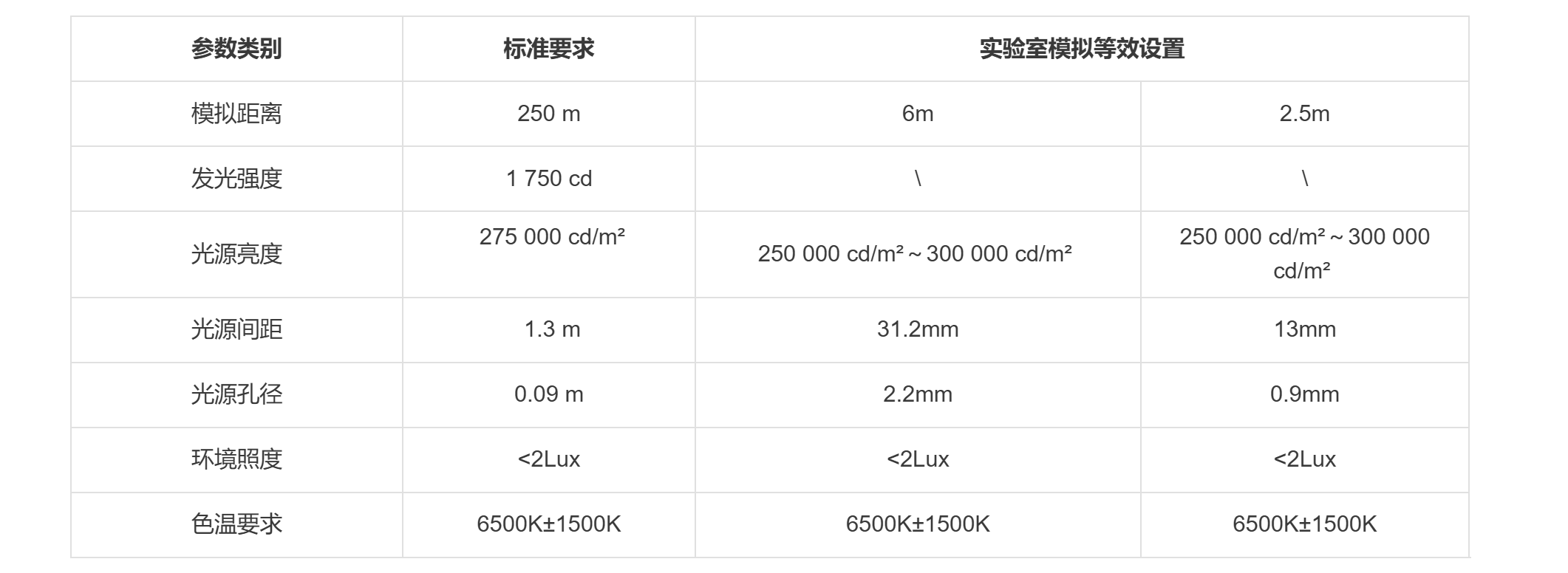 夜间行车时,后方车辆强前照灯易使CMS成像出现眩光、鬼影等伪像,严重干扰驾驶员对后方路况的判断。因此需通过双点光源测试,验证CMS在夜间环境下对后方车灯的识别与处理能力——合格的CMS应能清晰区分两个独立点光源,可帮助驾驶员准确判断后方车辆数量、位置,降低变道事故风险。